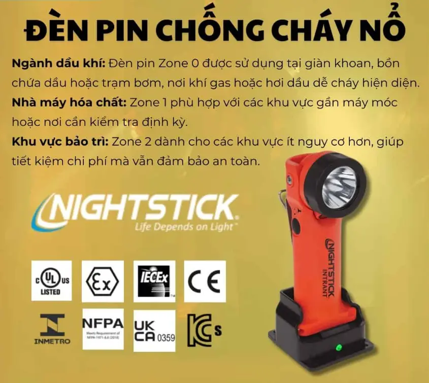 Trong môi trường làm việc tiềm ẩn nguy cơ cháy nổ như ngành dầu khí, hóa chất, hoặc khai thác mỏ, việc lựa chọn đèn pin không chỉ dừng lại ở độ sáng mà còn phải đáp ứng các tiêu chuẩn chống cháy nổ nghiêm ngặt. Các sản phẩm từ thương hiệu Nightstick là ví dụ điển hình, được thiết kế để đảm bảo an toàn tuyệt đối cho người lao động. Hãy cùng tìm hiểu các Zone (khu vực) trong phân loại tiêu chuẩn chống cháy nổ và ứng dụng thực tế.